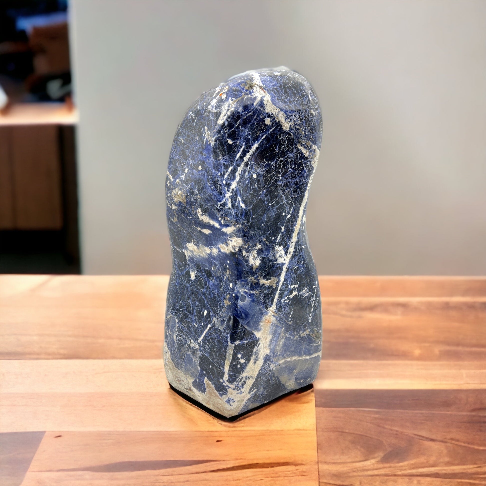 Blue sodalite is a beautiful blue mineral belonging to the sodalite group. It is a tectosilicate mineral composed of sodium, aluminum, silicon, chlorine, and oxygen. Sodalite crystals are known for their vibrant blue color, often with white or gray veining or mottling. Here's more information about blue sodalite, the blue sodalite is revered for its aesthetic appeal and is often used in jewelry and lapidary work. It's a popular gemstone choice due to its rich blue color and the white streaks or flecks that resemble stars in a night sky. Blue sodalite is considered a calming stone that can help balance emotions, reduce stress, and enhance emotional well-being. It is to bring harmony and a sense of inner peace. Blue sodalite is a calming stone that can help balance emotions, reduce stress, and enhance emotional well-being. It is believed to bring harmony and a sense of inner peace.